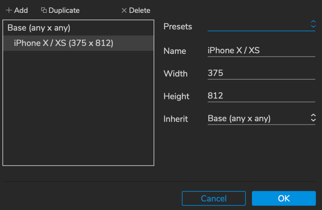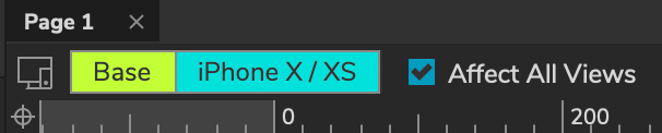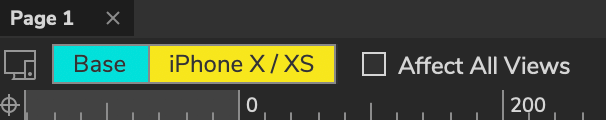 När man jobbar med adaptive views i Axure programmet underlättar den arbetet genom att ge färgkoder på det olika delarna man jobbar på. Exempelvis om du arbetar med Base så blir iPhoneX/XS gul, gul betyder att den är “barnet” till basen. Turkos menas att det är den du arbetar med och där kommer förändringarna att göras. Medan om du arbetar med iPhone X/XS blir den turkos och base blir grå, grå menas att det är “föräldern” till den vy du är på och kommer därav att inte förändras av redigeringen.