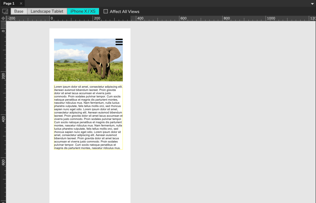 Genom att använda adaptive views i Axure kan menyer fällas ut eller dras in, bilder kan expandera eller förminskas, typsnitt kan förändras av storlek eller variant – detta i syfte för att underlätta intaget av information för användaren.