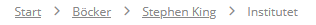 Cdon´s breadcum-länkar är klickbara och separerar sidorna samt förtydligar händelseförloppet med pilar. Din nuvarande sida (institutet) skiljer sig från tidigare sidor i och med att den inte är understruken och den är inte heller klickbar som de andra sidorna är. Att jag tog mig till boken ”institutet” från ”toppsäljare” är inte relevant utan cdon.se visar tydligt vart du befinner dig i hierarkin på webbplatsen, precis som breadcrums ska göra.