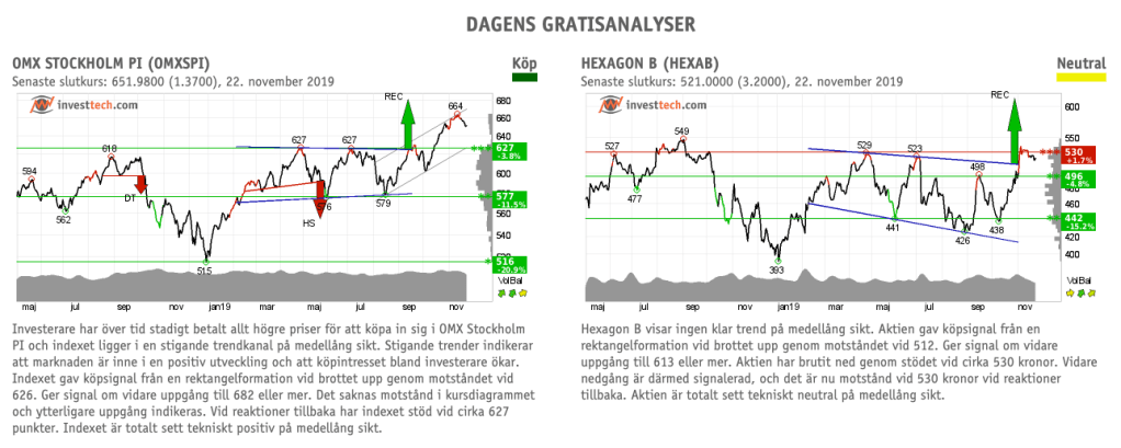 Väl inne på grafen ( https://www.investtech.com/se/market.php?CompanyID=46108970 ) är det bra val av färger som rött och grönt. Rött och grönt är bra men färgerna är starka och signalerar snabba förändringar. Grafen har förövrigt för liten storlek av tillhörande text, tecken samt att dem svarta kantiga linjerna är ett moment som stör, stressar och skrämmer. Aktier och siffror är något som skrämmer många människor och kräver att man besitter en vetskap om ämnet för att kunna förstå ekonomi i en större helhet än att enbart kolla på siffror och färger. Investtech kan jag tänka mig presenterar ett bra exempel för personer som är mer kunniga och insatta – kanske riskkapitalister – är dem som besöker avanza.se.