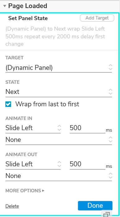 Efter det kan du välja vilket mål som Page Loaded ska syfta till. I detta fall är det “dynamic panel”.