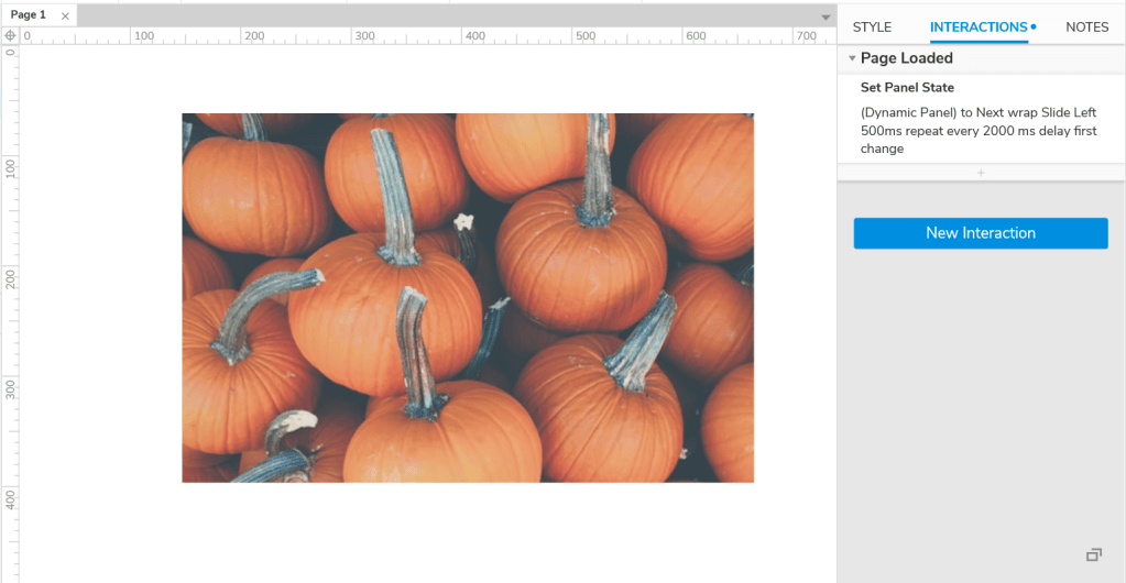 Därefter går du till interactions, trycker på New Interaction och väljer Page loaded.