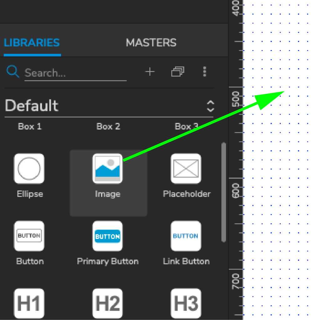 Det finns två huvudsakliga sätt att importera bitmapgrafik till Axure. Det ena görs med hjälp av ett förutbestämt objekt/box som sedan bilden appliceras genom. Det andra sättet är att dra en önskad fil från sin dator direkt in på arbetsytan. Det finns för och nackdelar med båda, men den första metoden kan framförallt vara fördelaktig då en struktur ska skapas. Det kan i ett sådant fall vara mindre relevant att visa bilder om inte dessa fyller en funktion strukturellt. Objekt/boxar kan även fylla ett syfte om bilderna som ska fylla upp prototypen inte fastställts än, i sådan situation kan objekten fyllas senare i processen när bilderna är bestämda.