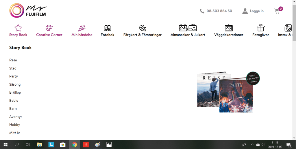 Det finns väldigt få kategorier att välja på och menyn blir väldigt tom. Det känns inte som att en fat menu är det optimala valet på denna sida då det tar upp en massa plats i onödan. Det finns inte så många kategorier att det är nödvändigt med en fat menu.