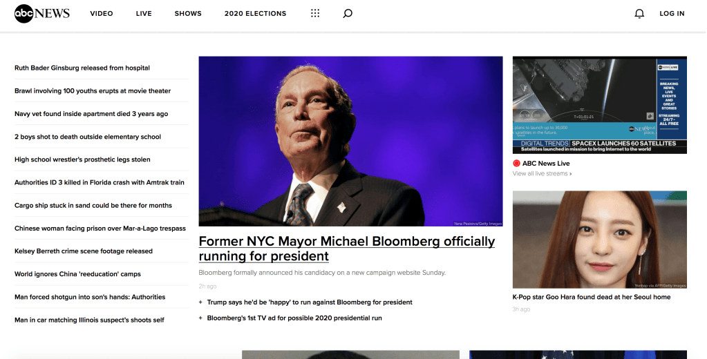 ABC News tycker vi också är rörig, även om det ser mer avskalat ut. Det finns ingen struktur som gör det lätt att få en snabb överblick. Det ligger en lista till vänster med nyheter utan bilder, som gör att det inte känns särskilt tilltalande och ser inte ut att höra hemma med resten av innehållet. Till höger om listan ligger både stora och små bilder utan tydlig struktur. Det finns heller inte särskilt många kategorier att välja på om man vill fokusera på ett specifikt område. Layouten känns inte så genomtänkt och placeringen av bilder känns inte heller så anpassad till webbplatsens yta då det finns tomma ytor på vissa områden.
