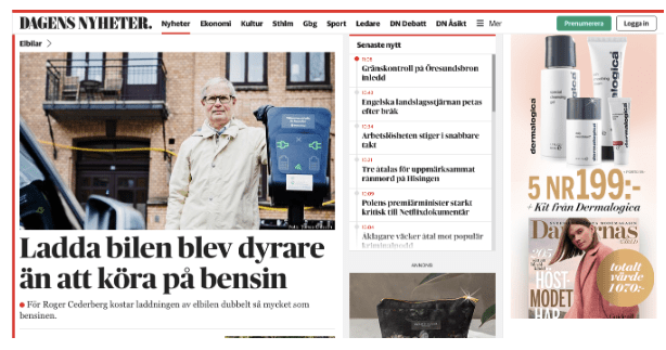 Aftonbladets nyhetsflöde är väldigt rörig med mycket reklam som stör användaren, det finns även mycket färger och animationer på sidan som vi upplever onödiga och röriga. Nyheterna ligger också huller om buller om varandra i flödet vilket gör att det blir svårt att veta när en nyhet slutar och nästa tar vid eftersom det inte finns någon tydlig indelning bland inläggen.