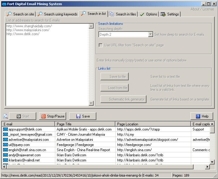 Fort Digital är en IT tjänst som kan användas av företag för att underlätta olika delar av sitt arbete, t.ex. email data mining. Bilden ovan visar deras email mining system, vilket använder sig av en del responsive enabling. Dock är stegen för hur man går vidare och aktiverar de inaktiverade delarna väldigt otydliga. Det följer inte ett flöde som känns naturligt för en användare som aldrig sett systemet tidigare. Förutom det så visas väldigt mycket information på en liten yta, vilket lätt känns överväldigande.