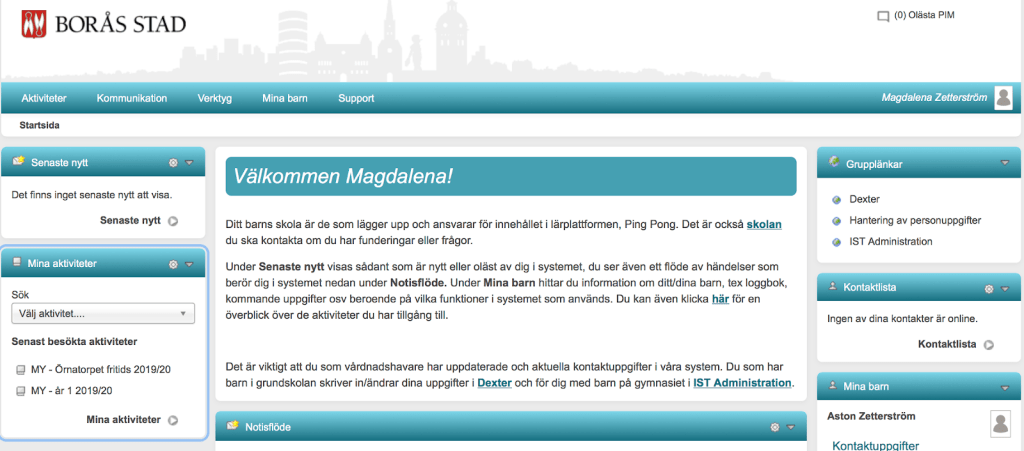PingPong (2019). Webbplats för vårdnadshavare i Borås kommun, enbart åtkomlig från inloggat läge. https://www.boras.se/utbildningochforskola/larplattformenpingpong.4.1bf797ef1589280df2c1417a.html