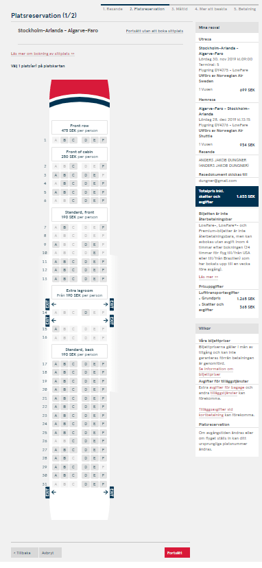 Trycker användaren på tillbaka knappen i webbläsaren så visas dock en modal panel som informerar användaren om att bokningen kommer att avbrytas om vederbörande går vidare. Denna varnande funktion fungerar bra som ett informerande komplement, men en större rörelsefrihet under bokningsprocessen hade skapat en starkare känsla av kontroll hos användaren.